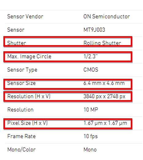 Pixel Size = 3.45um