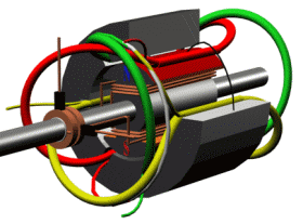 電動機主要包括一個用以產(chǎn)生磁場的電磁鐵繞組或分布的定子繞組和一個旋轉(zhuǎn)電樞或轉(zhuǎn)子和其它附件組成。在定子繞組旋轉(zhuǎn)磁場的作用下,其在電樞鼠籠式鋁框中有電流通過并受磁場的作用而使其轉(zhuǎn)動。