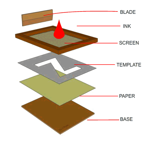 現(xiàn)代絲網(wǎng)印刷技術(shù),則是利用感光材料通過照相制版的方法制作絲網(wǎng)印版(使絲網(wǎng)印版上圖文部分的絲網(wǎng)孔為通孔,而非圖文部分的絲網(wǎng)孔被堵住),印刷時通過刮板的擠壓,使油墨通過圖文部分的網(wǎng)孔轉(zhuǎn)移到承印物上,形成與原稿一樣的圖文。