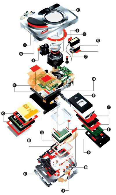 E.按鈕及硬質(zhì)材料的固定 F.鏡蓋的固定 G.閃光燈電池/緩沖墊的固定