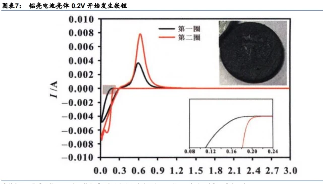 方形電池殼體帶電以防腐蝕。負極與殼體之間有 0.6-0.7V 的電壓。殼體帶電的原因是防止 腐蝕,當負極耳與鋁殼內(nèi)壁接觸,此時鋁殼與負極之間的電壓較低,鋰離子與鋁金屬會發(fā) 生嵌入反應。一般情況下電池殼電壓低于 0.4 V 時會存在腐蝕隱患,應避免殼電壓低于 0.4 V 的電池,并對電芯增加絕緣層、對鋁殼氧化處理等。