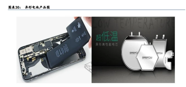 異形鋰電池由包裝膜、正極片、負極片、絕緣隔膜,極耳以及電解液構(gòu)成,正極耳和負極 耳可以分別設置于電池極組的相同或者不同側(cè)面,特點在于形狀可以呈規(guī)則或者不規(guī)則的 幾何形狀。 性能:屬于消費電池陣列,主要應用于電子電動產(chǎn)品、無線通信產(chǎn)品上,因此能量密度、 循環(huán)壽命、容量等方面低于動力電池,但機械穩(wěn)定性、耐用性、空間利用率和安全性較好。