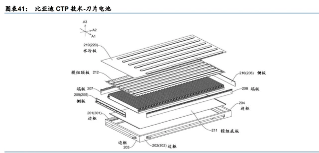 寧德 CTP 和比亞迪“刀片”各有千秋。比亞迪刀片電池把單個電芯寬度無限拉長,厚度做 薄,然后直接把電芯放在整個 PACK 里面進行安裝,盡可能簡化模組。寧德時代 CTP 在模組 和模組間采用一種套筒的連接方式緊貼在一起,同時套筒下游固定裝置和整車相連,從而 簡化了結(jié)構(gòu)。寧德 CTP 功率密度更高,成組效率更高,對大多數(shù)整車廠成本控制更為友善; 而比亞迪“刀片”電池在空間利用率上表現(xiàn)更好,結(jié)構(gòu)靈活性和耐久性上更具有價值和想 象空間。