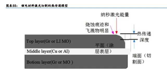 激光模切和機械模切相比速度較快(機械 40-50m/s,激光 60-70m/s),但前者成本較高、 可切厚度較低、可能燒蝕極片等問題比疊片提速容易解決。目前比亞迪等公司用疊片加機 械模切,是因為現(xiàn)在生產(chǎn)效率的瓶頸是疊片工序,其生產(chǎn)速度還不需匹配激光膜切。一旦 疊片單機速度提升,激光膜切在生產(chǎn)速度上就有明顯優(yōu)勢。出于效率匹配,選擇機械模切 對廠房和設備的投入更大。若未來涂布厚度提高、毛刺能有較好改善,機械模切可能仍存 在一定市場份額。目前從商業(yè)化過程中核心的生產(chǎn)效率來看,未來技術方向是卷繞加激光 膜切。