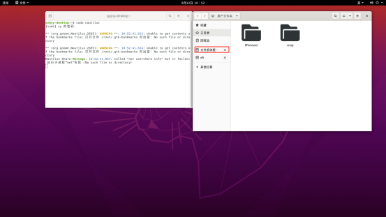 8. 在終端中執(zhí)行“sudo nautilus”指令