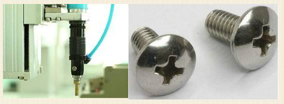 還有一個(gè)方法就是,用吸取式(吸附式)供料。先由螺絲供料器,一顆一顆供過來,然后用真空氣吸嘴,吸住螺絲,再鎖付。這個(gè)方法比較適合小一點(diǎn)的螺絲。