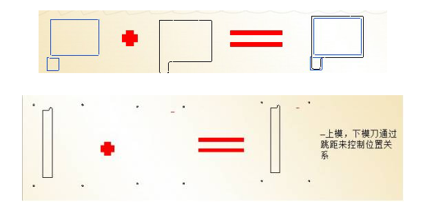 多刀套位模切工藝一般用在單刀不能完成的工藝,結(jié)構(gòu)復(fù)雜的產(chǎn)品。下面我們以基礎(chǔ)的雙刀配合入手為大家簡單講解下排工藝的要點。
