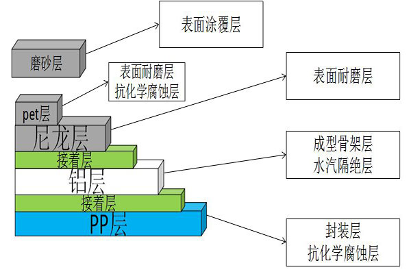 最外層的尼龍層主要是防止空氣中氧的滲透,維持電芯內(nèi)部環(huán)境。最外層采用尼龍層也是由于其具有良好的沖深性能,在早期的鋁塑膜中外層采用PET,但是由于PET自身張力大,導(dǎo)致產(chǎn)生彎曲,成型性差而被棄用。