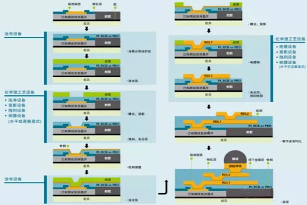2、通過新材料應(yīng)用提高WLP的性能和可靠度。主要針對I/O多、芯片尺寸大的產(chǎn)品。