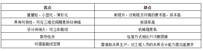 缺點(diǎn)是:制作復(fù)雜,周期長(zhǎng);初期投入成本高;壓片易變形;不適用于阻焊層采用PSR或PSC類的FPC。