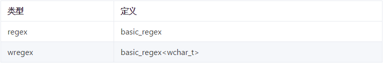 前面的示例中我們已經(jīng)看到,通過(guò)std::regex并傳遞字符串就可以構(gòu)造正則表達(dá)式對(duì)象。實(shí)際上,除了std::regex,還有寬字符版本的std::wregex。它們都源自std::basic_regex