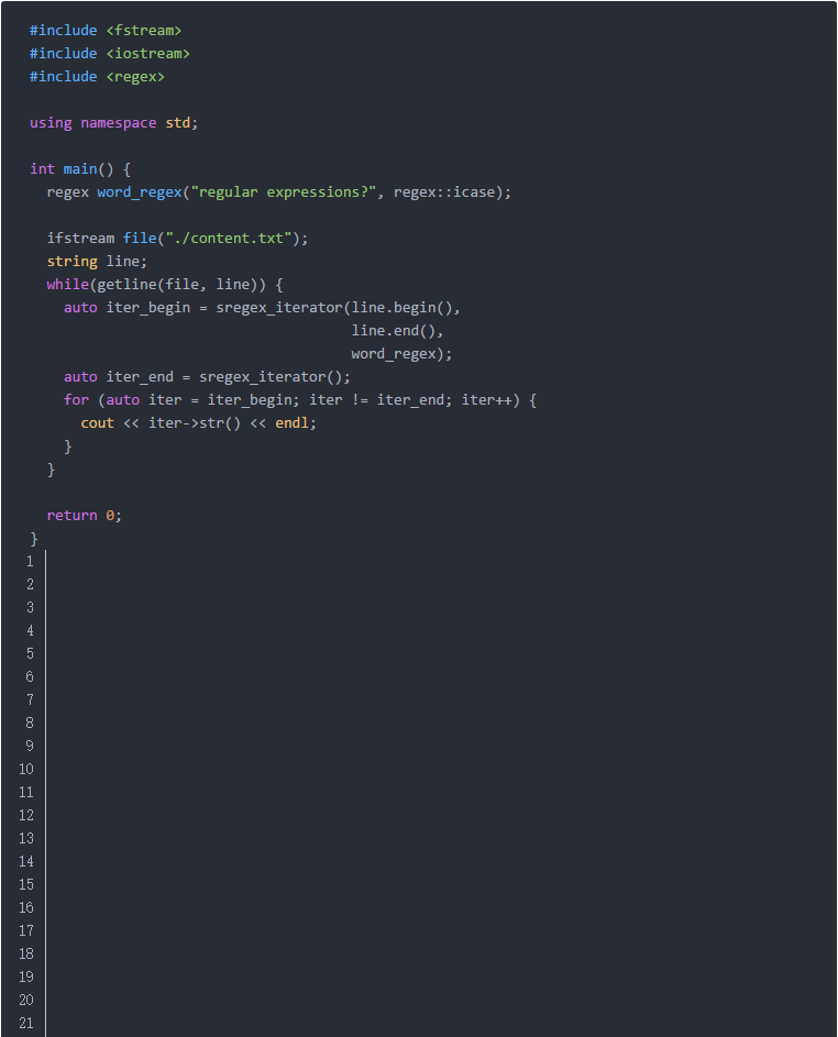 通過(guò)std::regex::icase我們指定了這個(gè)正則表達(dá)式是不區(qū)分大小寫(xiě)的。