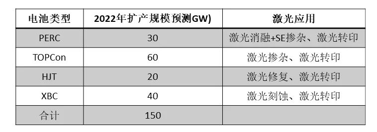 激光在N型電池中的應(yīng)用包括激光摻雜、激光修復(fù)、激光刻蝕、激光轉(zhuǎn)印等,價(jià)值量較PERC時(shí)代有望成倍增長(zhǎng),因此N型電池放量也將帶來光伏激光設(shè)備市場(chǎng)空間快速擴(kuò)容。