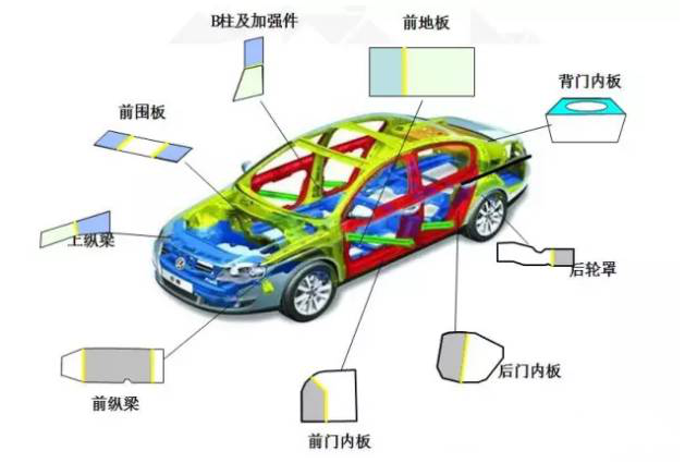 隨著技術(shù)的進步,拼焊鋼板已在汽車工業(yè)得到廣泛應(yīng)用,拼焊鋼板已應(yīng)用在車身縱梁、骨架、地板、門內(nèi)板、側(cè)圍和保險杠等多個部位。