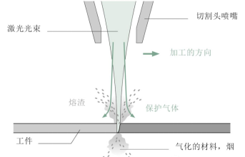 圖:激光使材料蒸發(fā),燃燒。蒸氣的壓強使熔渣從切口排出