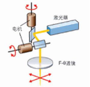 從激光器中輸出的光束,由安裝在高速精密電機上的兩個反射鏡控制,以實現(xiàn)光束的運動打標(biāo)。每個反射鏡都沿著單一的軸線運動。電機的運動速度非???,并且慣性非常小,從而能夠?qū)崿F(xiàn)對目標(biāo)物體的快速打標(biāo)。經(jīng)過反射鏡引導(dǎo)的光束利用F-θ透鏡聚焦,焦點位于被標(biāo)記的平面上。當(dāng)該聚焦光束與被標(biāo)記物體相互作用時,物體就被“打上標(biāo)記”了。除了被打標(biāo)的位置,物體的其他表面仍然保持不變。