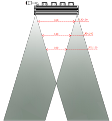 光源(推薦)工作距離為50~150mm。表1為交叉線形光源的推薦工作距離、理論有效范圍與實(shí)際有效范圍的關(guān)系圖。