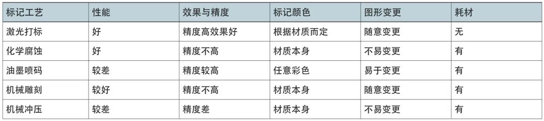 激光刻字的工作原理是以能量密度極高的激光束在計算機(jī)的控制下,照射到需要打標(biāo)的產(chǎn)品表面,使產(chǎn)品表面瞬間熔化或汽化,從而在產(chǎn)品表面標(biāo)刻出需要的文字或圖案標(biāo)識,如圖4所示。激光刻字也叫激光打標(biāo),激光打標(biāo)的特點:永久牢固、圖案精美、高速高效、非接觸方式、重復(fù)精度高、無須制版、沒有污染、易于實現(xiàn)與生產(chǎn)線同步飛行打印等特點。標(biāo)記內(nèi)容可以是數(shù)字、字母、漢字、圖形圖象、條形碼等。激光刻字是目前國際流行的最為先進(jìn)的打標(biāo)模式,非常適應(yīng)現(xiàn)代化生產(chǎn)(高效率、快節(jié)奏)。如表1所示是幾種標(biāo)記工藝的對比,從中可以看出來,激光打標(biāo)技術(shù)的優(yōu)勢是非常明顯的。