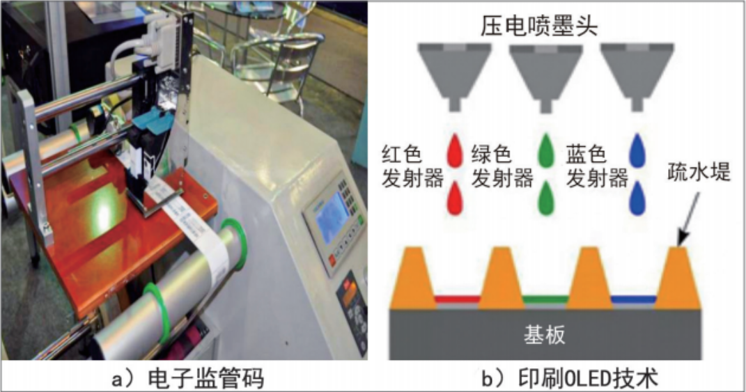 噴墨印刷是一種典型的無版印刷方式,也是最徹底的直接印刷技術(shù)。在噴墨印刷的過程中,沒有中間媒介,油墨是通過噴墨打印頭直接噴射到承印物上進而在承印物表面形成圖像。根據(jù)出墨方式不同,噴墨印刷可分為連續(xù)型噴墨打印(CIJ)和按需型噴墨打印(DOD)。由于按需型噴墨打印技術(shù)具有精度高、可控度高等特點,因此受到了更多的關(guān)注,且應(yīng)用較為廣泛。噴墨印刷主要的優(yōu)勢是不需要制版,可以通過計算機改變需要印刷的圖案。但是噴墨印刷技術(shù)需要的打印時間長,對油墨的性能要求高,這些缺點在一定程度上限制了噴墨印刷在印刷電子領(lǐng)域的廣泛應(yīng)用。噴墨印刷系統(tǒng)的應(yīng)用如圖所示。