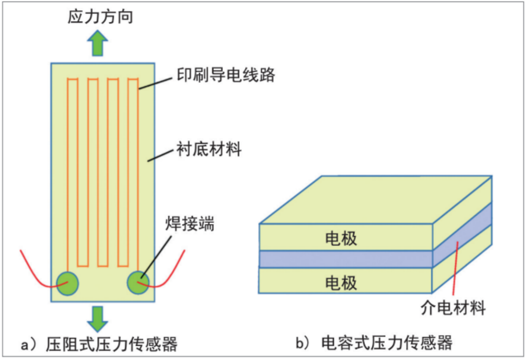 作為下一代電子產(chǎn)品,可穿戴電子設(shè)備可以與我們的身體相結(jié)合,以擴展我們的感知能力,或提供實時的個人健康信息等。壓力感知能力是人類皮膚最基本而又最強大的特征之一。柔性有機聚合物和可拉伸壓力傳感器為模擬人類皮膚的傳感和柔軟的機械特性提供了一個潛在機會。同時,具有高傳感性能的壓力傳感器在軟機器人、可穿戴電子設(shè)備、生物醫(yī)學(xué)設(shè)備和智能包裝中有著廣闊的應(yīng)用前景。目前,各種不同結(jié)構(gòu)的壓力傳感器已經(jīng)發(fā)展起來,如電容式、壓阻式和壓電式。