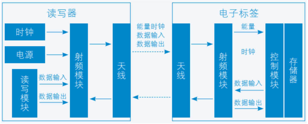 RFID 電子標簽主要包含閱讀器、感應(yīng)器、芯片、天線、應(yīng)用系統(tǒng)等,如圖所示。RFID 的工作原理是通過 RF 信號和空間耦合傳輸特性對物體進行識別,在它的組成結(jié)構(gòu)中,起到接受和發(fā)射信號作用的是天線,因此,天線的研究發(fā)展對 RFID標簽的發(fā)展有著重大影響。