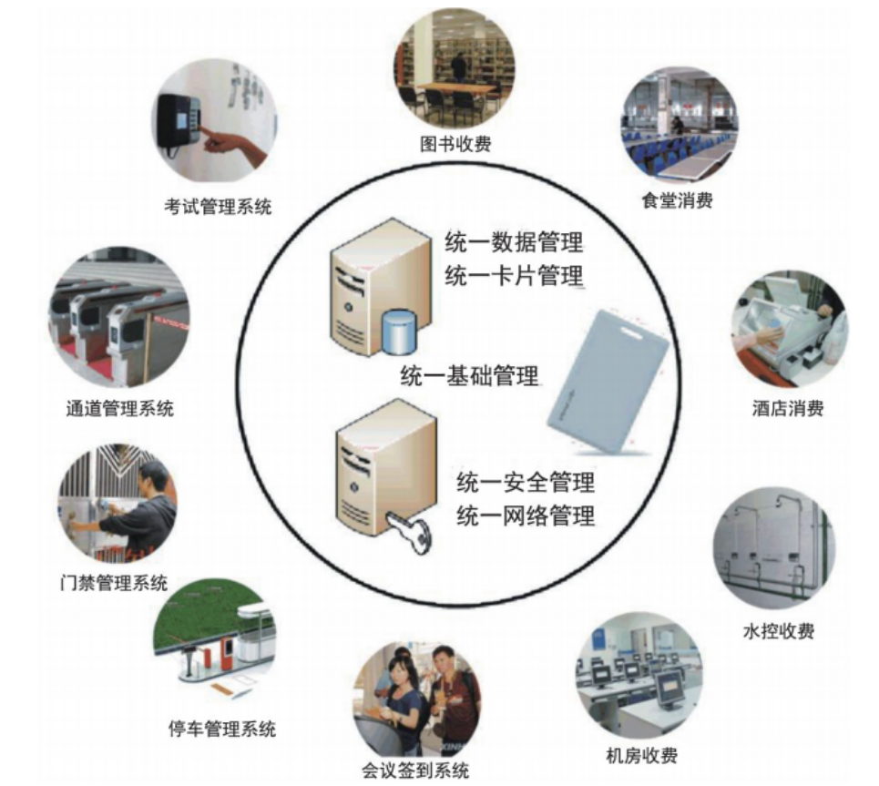 NFC 電子標簽技術(shù)是在 RFID 電子標簽的基礎(chǔ)上結(jié)合了互聯(lián)互通技術(shù)的一種短距離的高頻無線通訊技術(shù)。與 RFID 一樣,NFC 信息也是通過頻譜中無線頻率部分的電磁感應(yīng)耦合方式傳輸,NFC 是在設(shè)備之間進行非接觸式點對點數(shù)據(jù)傳輸以進行數(shù)據(jù)交換,它與藍牙的功能十分相似,都屬于短距離通信技術(shù),且都集成到移動電話中,但 NFC 沒有復(fù)雜的程序設(shè)置,是藍牙的簡化版。相對于 RFID,NFC 具有距離近、能耗低等特點,是一種安全、迅速的無線連接方式,其應(yīng)用如圖所示。