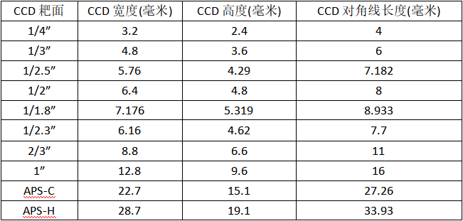 CMOS_CCD耙面尺寸