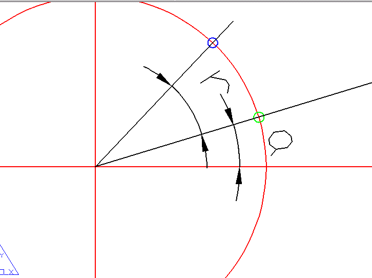 綠色的點為原始點(x,y),轉(zhuǎn)過r度后到藍色的點的位置,我一開始想到的是先求出初始點(綠色的點)的初始角度a,然后計算出半徑,根據(jù)三角關(guān)系可以得到新點的坐標。