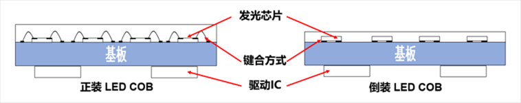 COB封裝有正裝COB封裝與倒裝COB封裝。正裝COB的發(fā)光角度與打線距離,從技術(shù)路線上就局限了產(chǎn)品的性能發(fā)展。倒裝COB作為正裝COB的升級產(chǎn)品,在正裝COB超小點間距、高可靠性、面光源發(fā)光基礎(chǔ)上進一步提升可靠性,簡化生產(chǎn)工序、顯示效果更佳、近屏體驗完美、可實現(xiàn)真正意義上的芯片級間距,達到Micro的水平。
