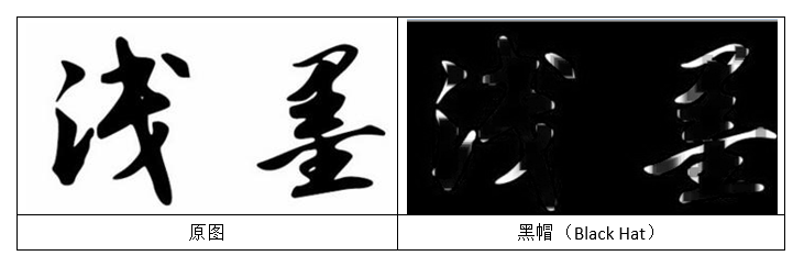 黑帽運(yùn)算后的效果圖突出了比原圖輪廓周?chē)膮^(qū)域更暗的區(qū)域,且這一操作和選擇的核的大小相關(guān)。