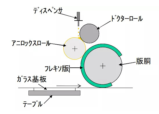 PI(Polyimide)是一種透明的有機(jī)高分子材料,有主鏈和側(cè)鏈,經(jīng)涂布烘烤后,會(huì)牢固地附著在CF 和TFT 基板表面。PI 的涂布采用一種凸版印刷的技術(shù)。其工作原理見(jiàn)以下示意圖: