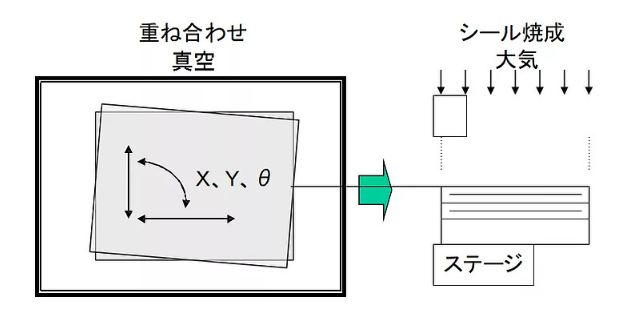 CF玻璃基板上滴下液晶,然后在真空環(huán)境下對(duì)貼制盒,最后經(jīng)紫外固化和熱固化后成盒。