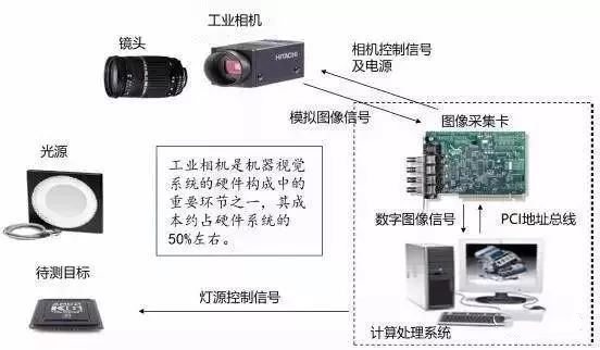 視覺系統(tǒng)的硬件主要由鏡頭、攝像機(jī)、圖像采集卡、輸入輸出單元、控制裝置構(gòu)成。