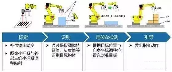 工業(yè)機(jī)器視覺難點(diǎn)在于精度和速度,要求都在毫米級(jí),且工業(yè)領(lǐng)域工業(yè)機(jī)器人抓手的變動(dòng)是在三維空間內(nèi)。根據(jù)功能不同,機(jī)器人視覺可分為視覺檢驗(yàn)和視覺引導(dǎo)兩種。