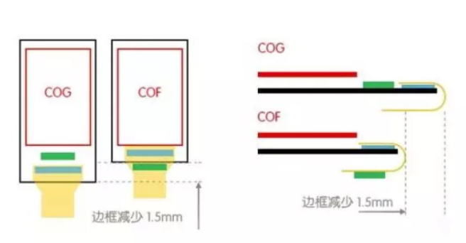 在進(jìn)入“全面屏”時(shí)代之前,"COG"(Chip On Glass)是智能手機(jī)屏幕普遍采用的一種封裝技術(shù)。COG就是IC芯片被直接綁定(bonding)在LCD液晶屏幕的玻璃表面,這種封裝技術(shù)可以大大減小整個(gè) LCD 模塊的體積,良品率高、成本低并且易于大批量生產(chǎn)。