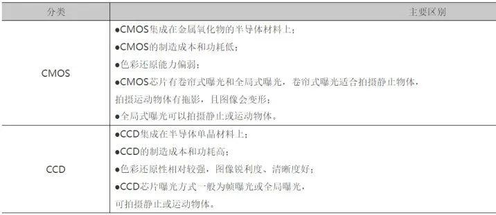 按照芯片類型:可以分為CCD相機(jī)、CMOS相機(jī);