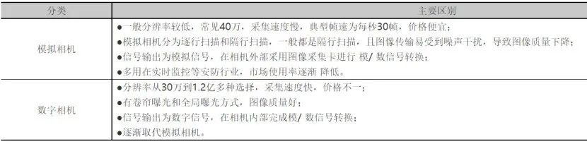 按照輸出信號(hào)方式:可以分為模擬相機(jī)、數(shù)字相機(jī);