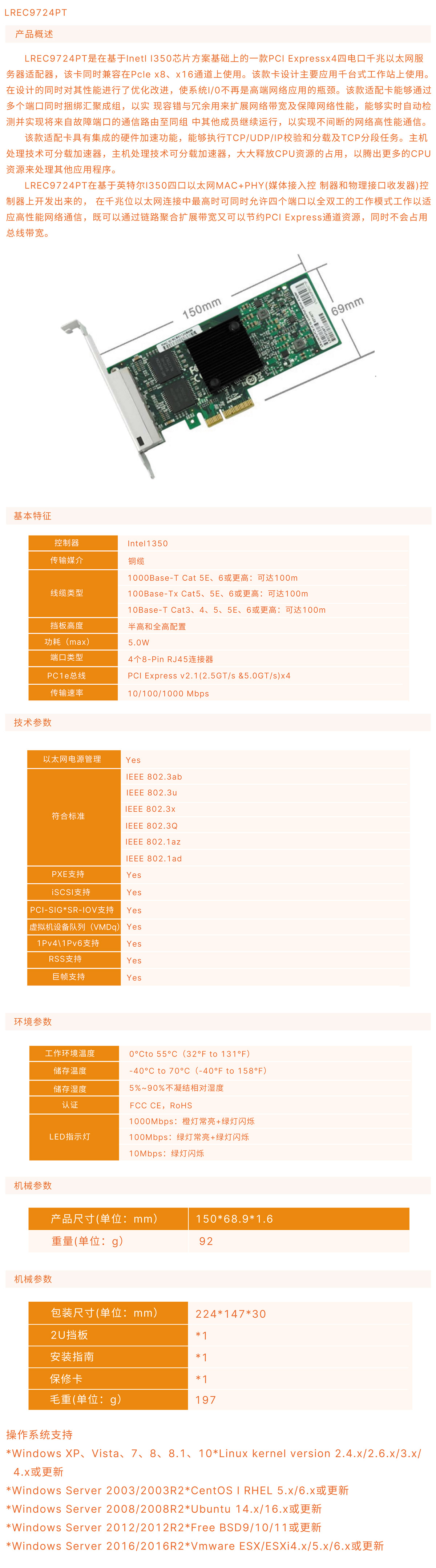 圖像采集卡是基于Intel I350芯片方案基礎(chǔ)上的一款PCIExpressx4四電口千兆以網(wǎng)服務器適配器,該卡同時兼容在Pclex8、x16通道上使用。該卡同時兼容子啊Pcle8、x16通道上使用。該款卡設(shè)計主要應用千臺式工作站上使用。