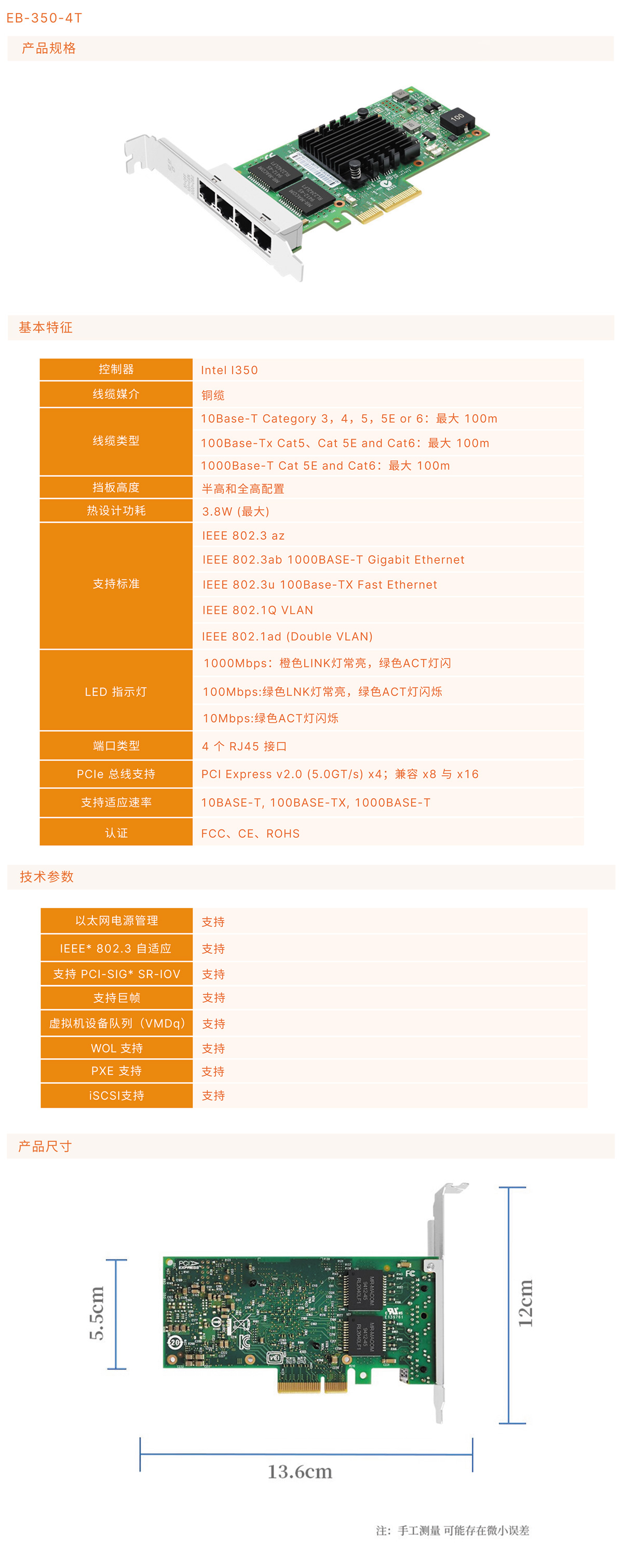 EB-350-4T采用PCI-e X4線路設(shè)計,集成四個千兆RJ45網(wǎng)卡接口。為臺式電腦設(shè)備而設(shè)計的。并且對其性能進(jìn)行了優(yōu)化,使系統(tǒng)I/0不再是高端網(wǎng)絡(luò)應(yīng)用的瓶頸。啟用通過分組容錯。故障端口的流量會被路由到組里的其它成員。有一個集成的硬件加速功能,它執(zhí)行TCP/UDP/IP校驗(yàn)以及TCP分段任務(wù)。主機(jī)處理技術(shù)可以分載加速器,釋放CPU資源,用以處理其它應(yīng)用程序。