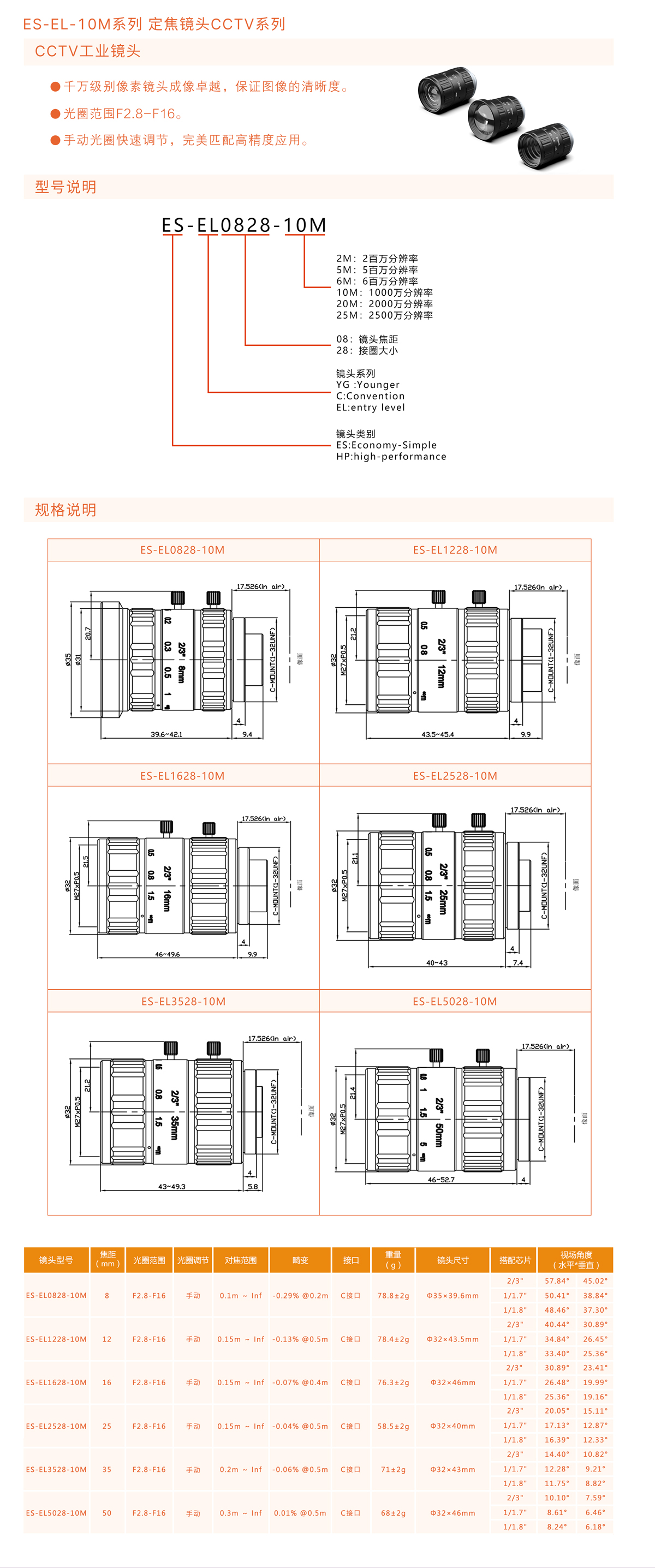 ES-EL-10M系列 定焦鏡頭CCTV系列