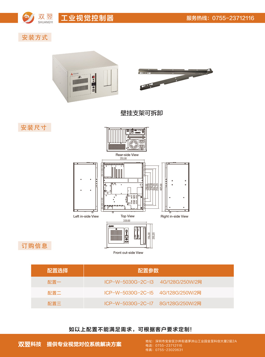 ICP-W-5030G-2C視覺(jué)控制器是4U壁掛式安裝標(biāo)準(zhǔn),采用優(yōu)質(zhì)鋼板成型,結(jié)果穩(wěn)定,驅(qū)動(dòng)器支架采用防震式設(shè)計(jì),有效減小震動(dòng),機(jī)箱上蓋和前面板均采用免工具設(shè)計(jì),方便拆卸。