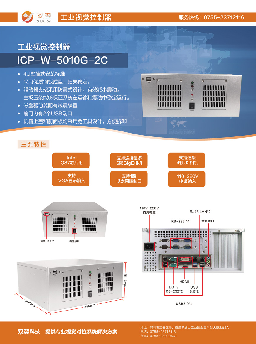ICP-W-5010G-2C視覺控制器是4U掛壁式安裝標準,采用優(yōu)質(zhì)鋼板成型,結(jié)果穩(wěn)定,前門內(nèi)有2個USB端口,機箱上蓋和前面板均采用免工具設(shè)計,方便拆卸。